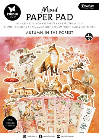 Block con 42 hojas con preciosas ilustraciones de temática otoño de la marca Studio Light.