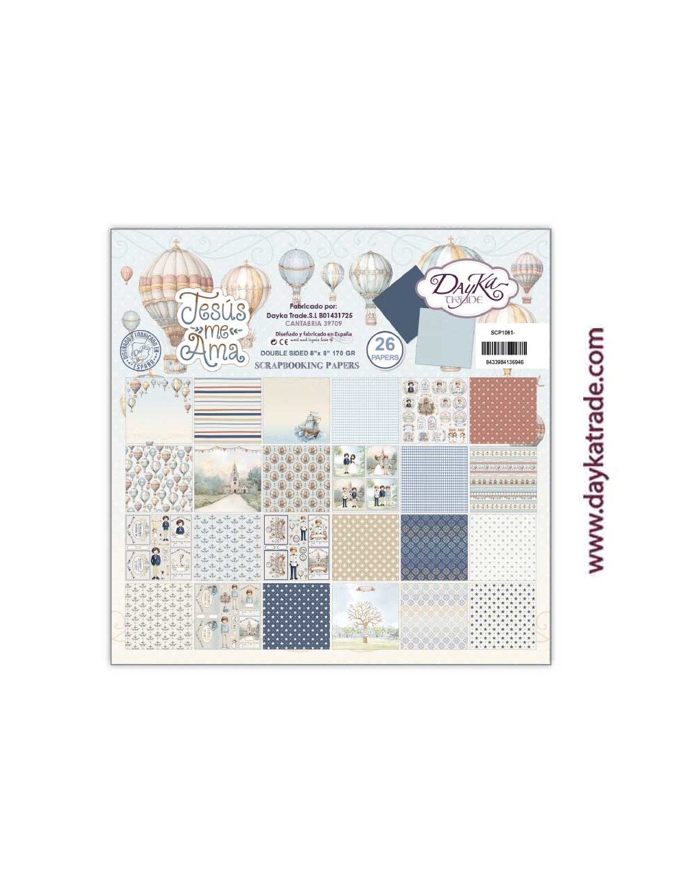 Block de 26 papeles para Scrapbooking de Dayka Trade, pertenecientes a la colección de comunión niñ0 2026