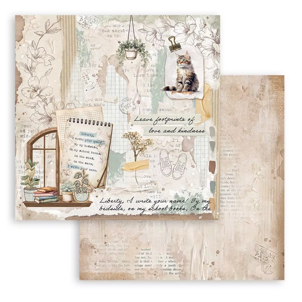 10 papeles de scrap a doble cara de 30,5 cm x 30.5 cm (12″ x 12″) diseñada por Vicky Papaioannou para la marca Stamperia.