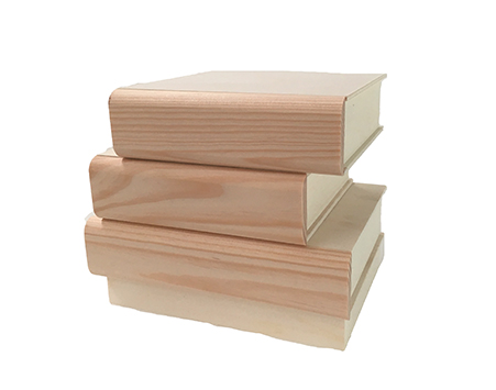 Caja con 3 cajones en forma de libros desiguales en madera de chopo, de la marca Dayka Trade.