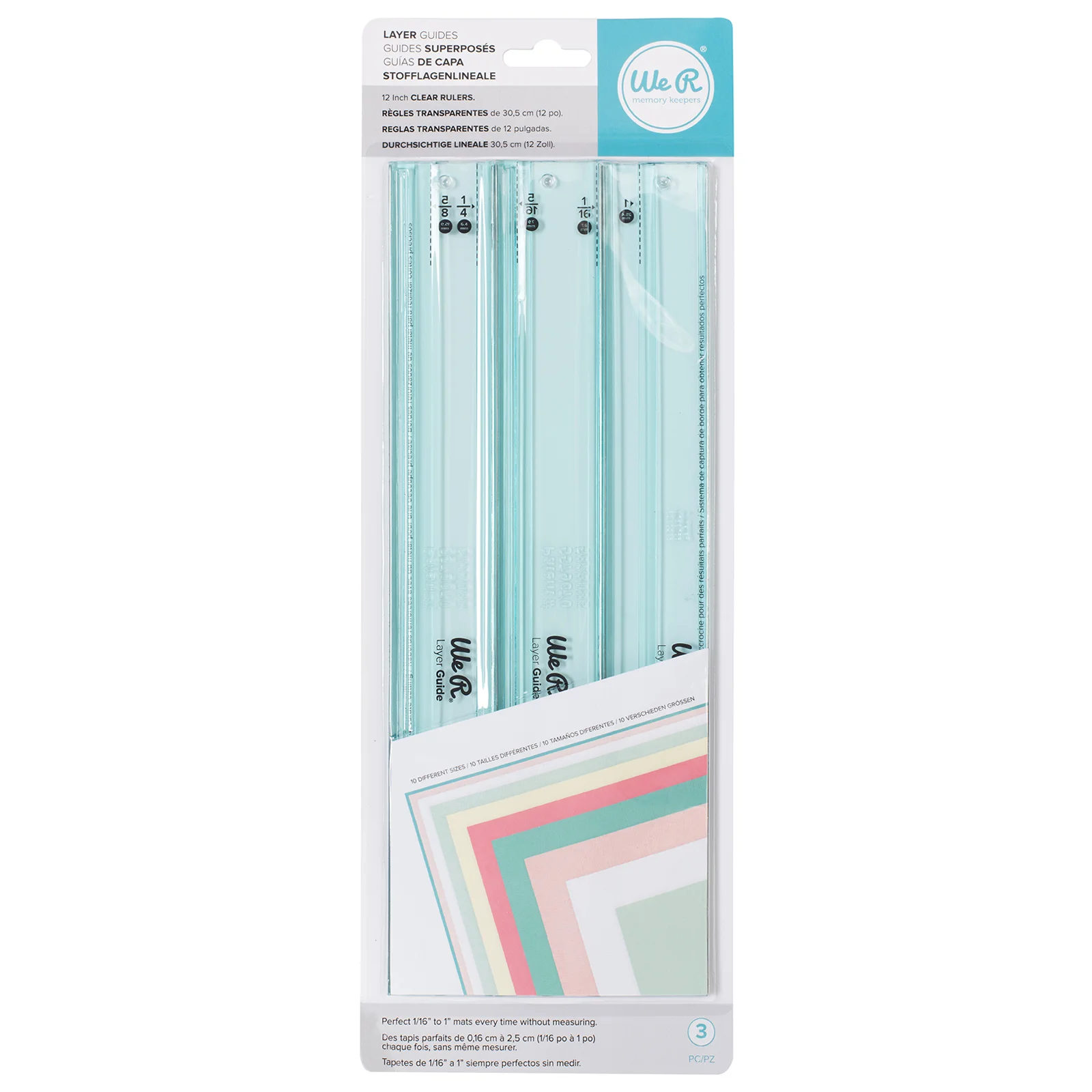 Set de 3 guías de alineación (Layer Guides) de la marca We R Memory Keepers, para alinear y hacer capas con facilidad. Incluye 10 medidas diferentes para realizar diferentes capas.