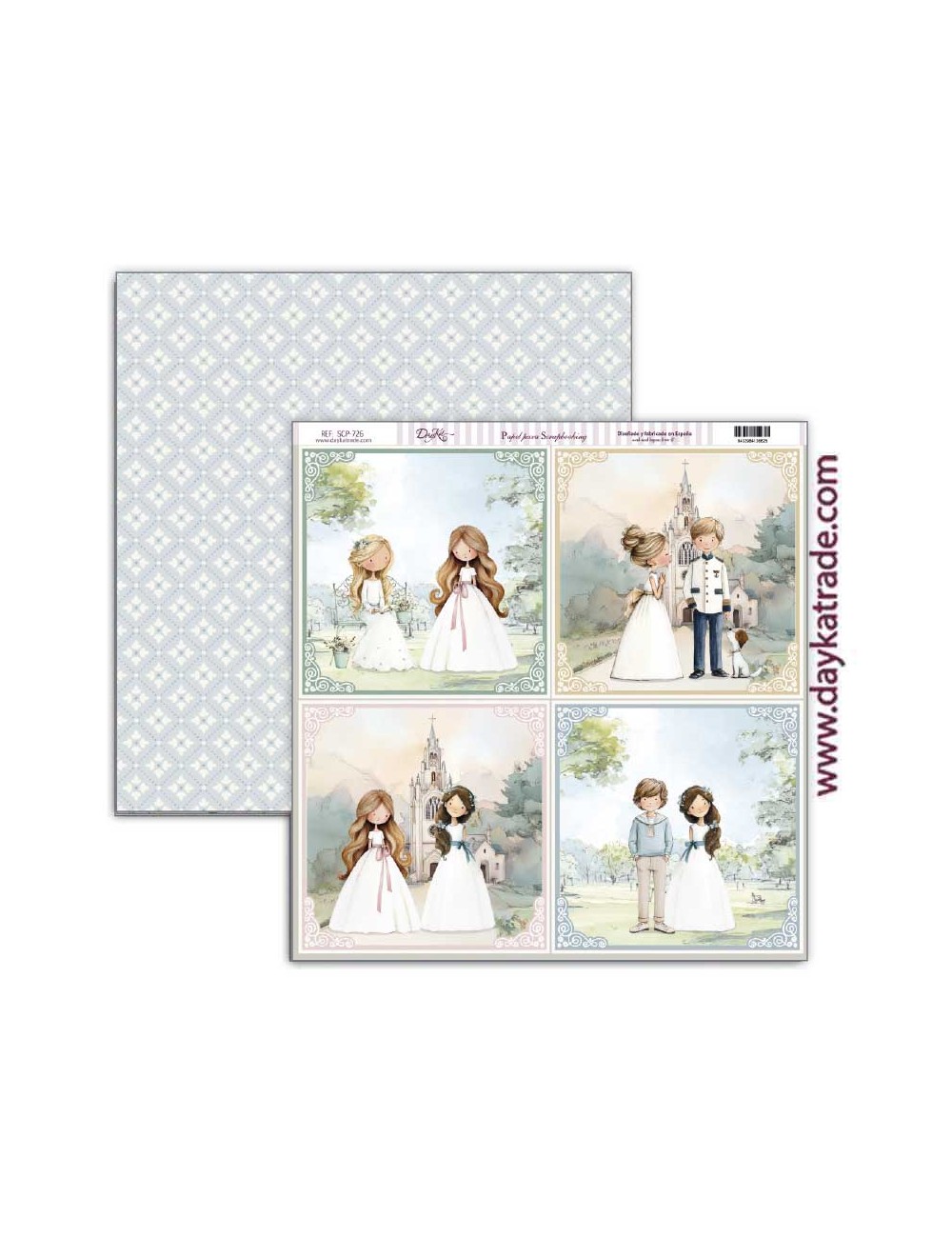 Papel de scrap a doble cara libre de ácido de Dayka Trade, perteneciente a la colección de comunión 2026 niña.
