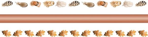 Uno con estampado de hojas otoñales, otro de pluma y otro en color marrón metalizado.